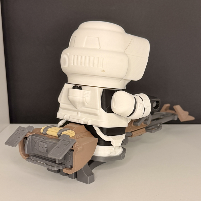 Introducing the Scout Trooper and Speeder Bike from The Kit Kiln designer, standing approximately 15cm tall. This unique collectible from the Chunkable collection, allows for a great dislplay item with moveable pieces. Add this versatile and fun kit to your collection or give it as a gift.